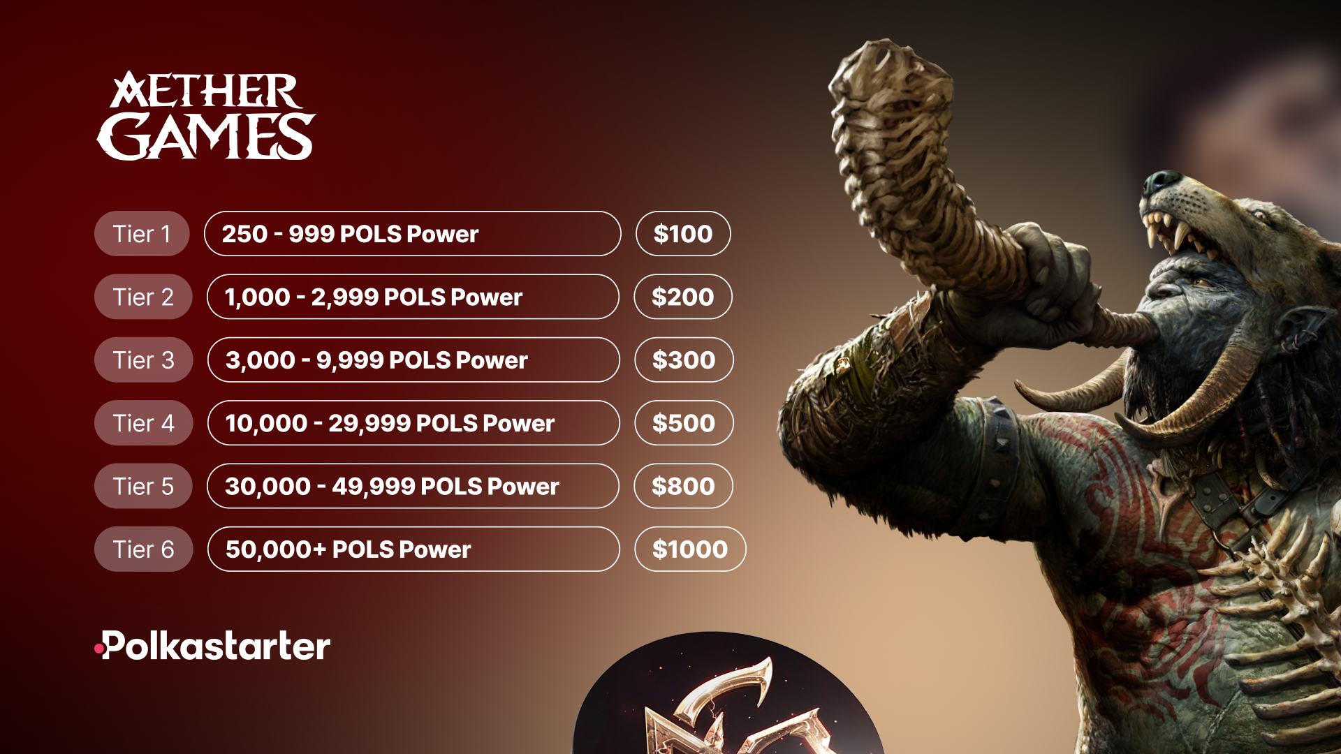 Your participation chances were determined by your $POLS holdings/staking at the time of the lottery. Your Tier also dictates your allocation size for the Aether Games IDO. Community winners are allocated $500.