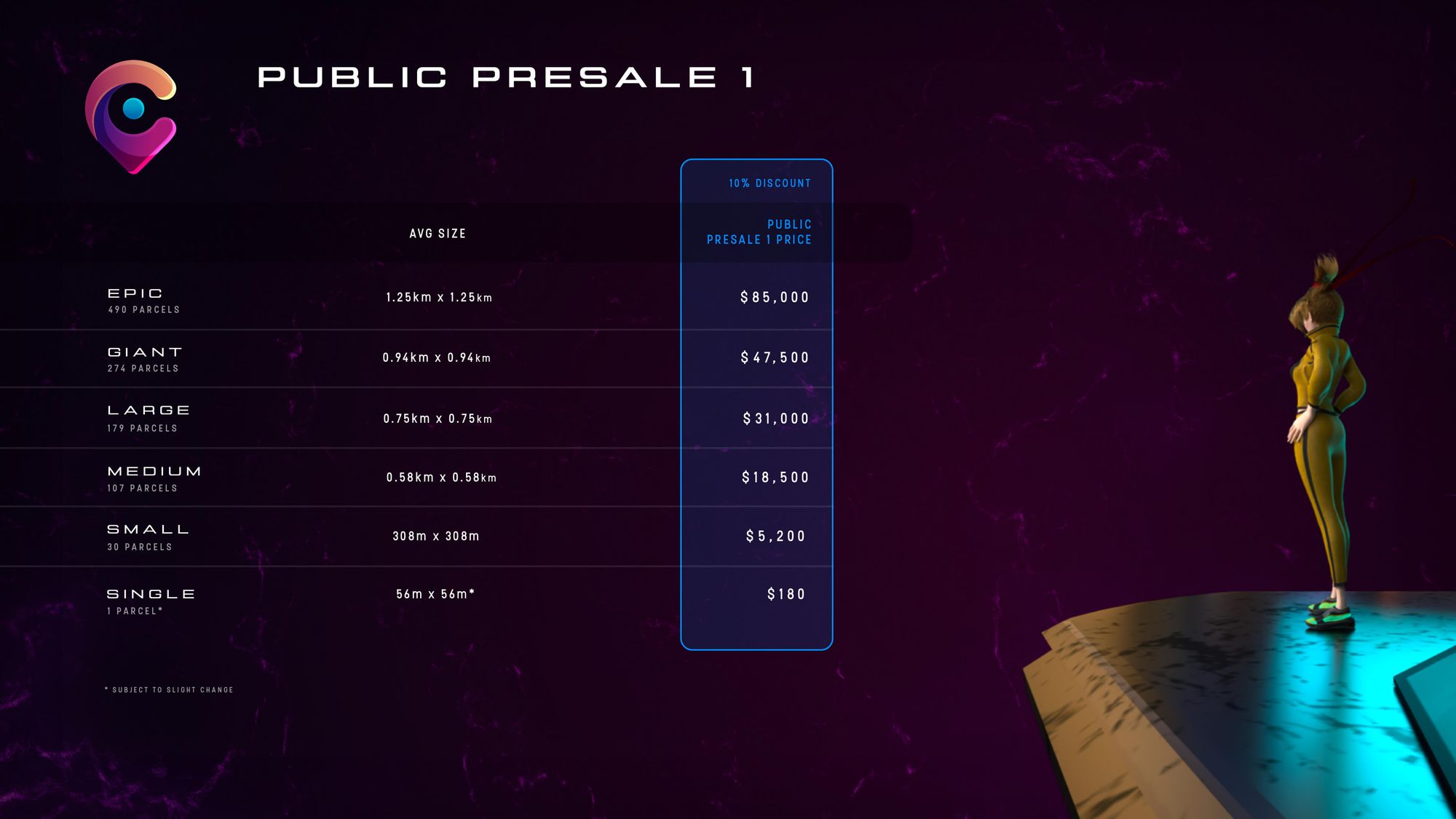 This sale is going to be slightly different from most NFT land sales. You won’t be buying individual plots of LAND, rather you’ll be purchasing Estates with one or more parcels (the average size of an individual parcel is 56mx56m).