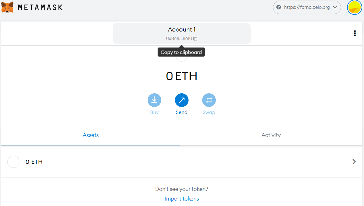 4- As you can see, the default network on MetaMask is set to the Ethereum Mainnet (top right). Let’s now add Celo to the list.