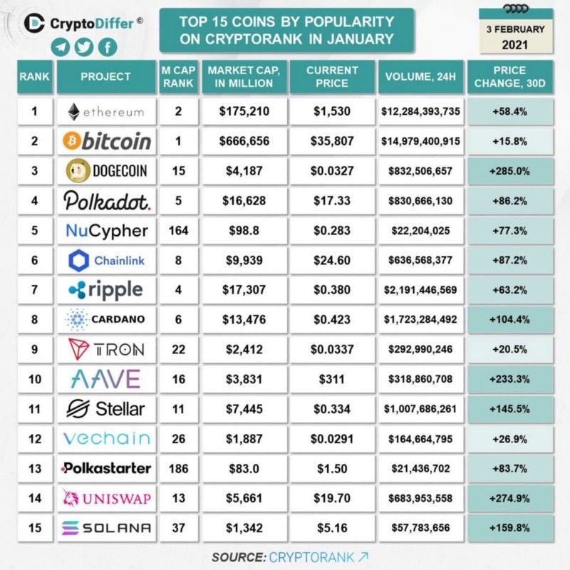 Polkastarter has also broken into the Top 15 of all cryptos in popularity in January 2021. This is absolutely incredible, and we’d like to thank all our supporters for spreading the word and sharing in our vision.