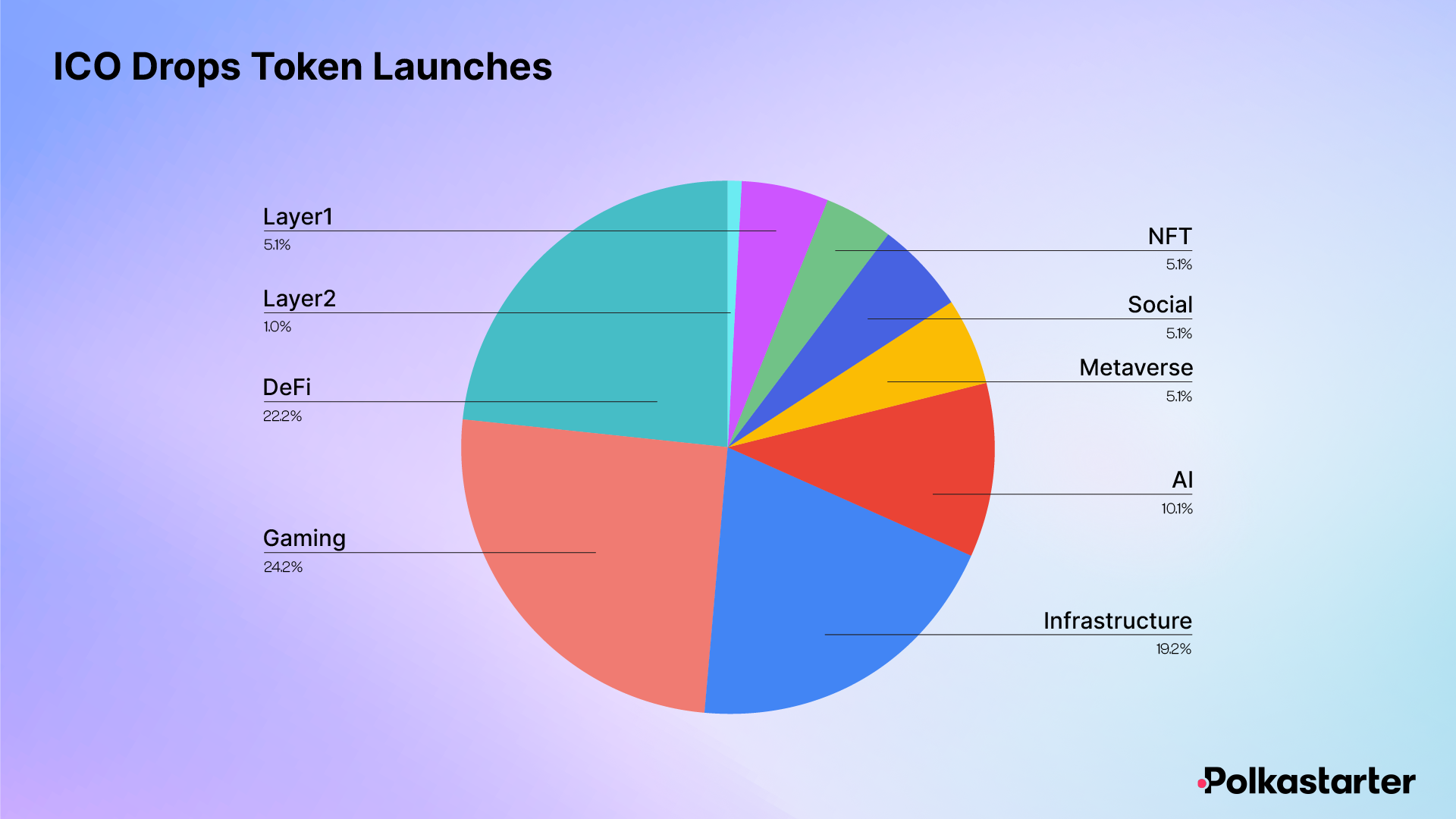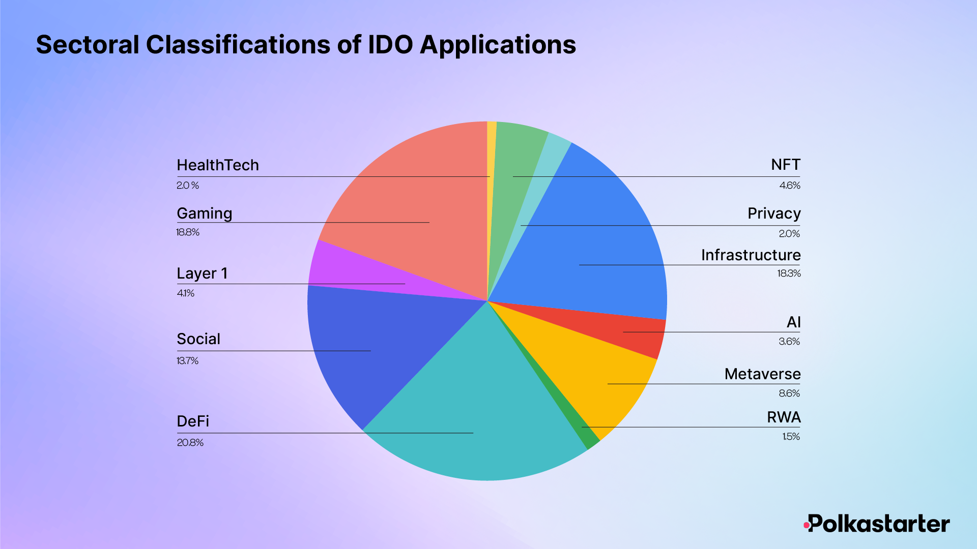 - Little-to-no L2s or roll-up technologies. Though fields like zk-proofs have been rapidly gaining popularity, due to greater infrastructure and R&D overheads, these projects may seek more private investment, making them less likely to directly apply for a Polkastarter IDO.